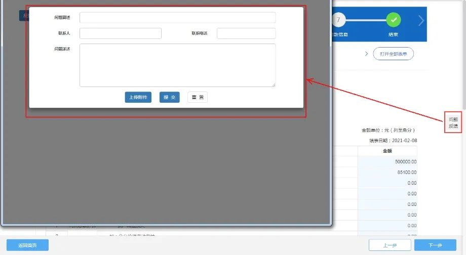 电子税务局网上申报系统有在线问题提交功能,纳税人可以通过申报界面右侧的【问题反馈】按钮,在线提交相关申报问题,并查看问题处理结果及建议。